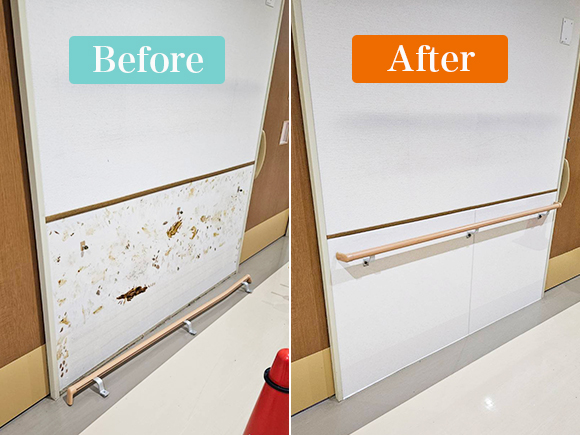 壁の破損、汚れによる壁紙の張り替え、手すり・ドアの破損の修繕など、大手の施工業者にはお願いしづらい細かなご依頼を承ります。
