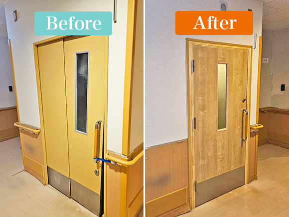 破損しやすい吊り戸を「開き戸」や「引き戸」にリフォームにするなど、現場の現状に合ったご提案をいたします。